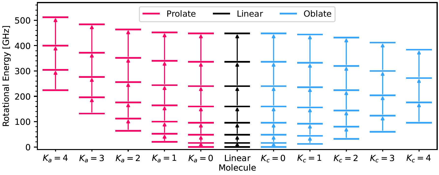 This is shown in the following figure where the energy term diagrams are compared to a linear molecule.